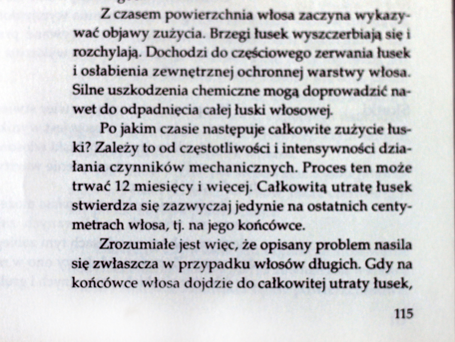 Czytam Twojego bloga od miesiąca i od tego czasu czuję chęć na rozpoczecie kuracji moich długich włosów. Niestey, kiedyś coś mi strzeliło do głowy i je pocieniowałam, przez co końcówki najdłuższych włosów dzieki podcinaniu (żeby wyrównac je z krótszymi) wyglądają jako-tako, ale niestety nie podcinane końcówki krótszych włosów wyglądają (lekko mówiąc) źle. na włosy od ucha stosuję coś jedwabiopodobne w sprayu, co nazywa sie odżywką dwufazową z proteinami mleka i jedwabiem. Czy ma to dużo wspólnego ze składem – nie wiem.