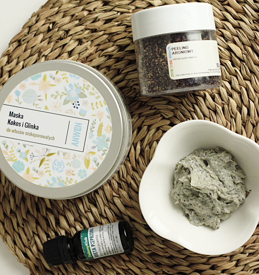 Olejek miętowy, który użyłam ma za zadanie pobudzić krążenie krwi i sprawić, że włosy będą szybciej rosły (oczywiście pod warunkiem regularnego stosowania), glinka pomaga oczyścić skórę głowy, absorbuje sebum i reguluje pracę gruczołów łojowych, a peelingujące drobinki pomagają pozbyć się obumarłego naskórka (w tym również łupieżu suchego). Co do maski to wybierzcie po prostu coś bez silikonów w składzie i innych obciążąjących substancji, a także takich które mogłyby Was podrażnić czy uczulić. Ja postawiłam na anwenówkę nie tylko z oczywistych względów, ale również dlatego, że miałam pewność, że nie obciąży mi włosów, a dodatkowo w składzie już ma glinkę i nawilżający kwas hialuronowy. Moja skóra głowy już doszła do siebie, ale gdzieniegdzie miałam jeszcze resztki łupieżu suchego po imbirowym przesuszeniu. Teraz, po peelingu w końcu jest czysta i gotowa na testowanie nowej wcierki 🙂