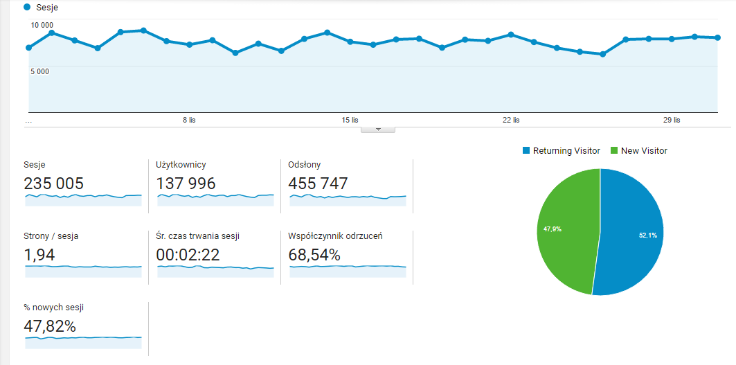 - 52,1% użytkowników to osoby powracające na bloga
