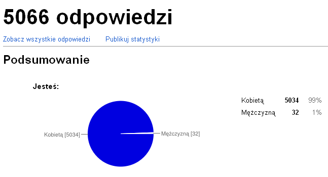 Wg ankiety przeprowadzonej na początku 2014 roku, którą wypełniło ponad 5 tys osób: